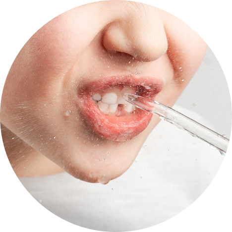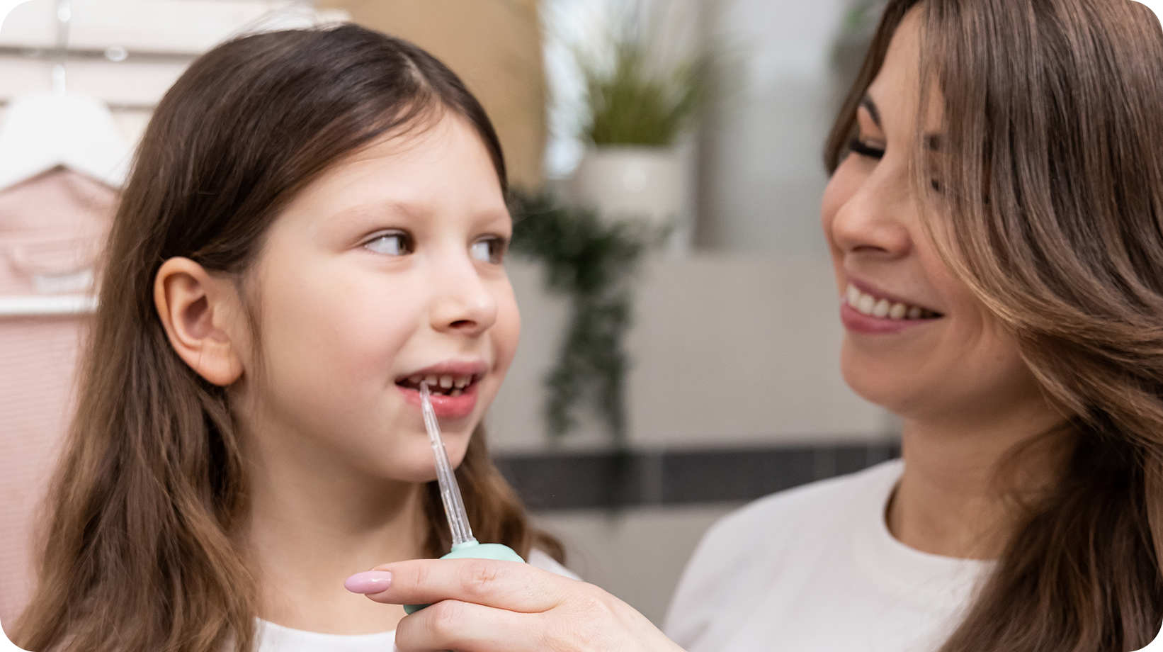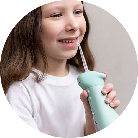 Łagodny strumień wody masuje dziąsła Twojego dziecka.