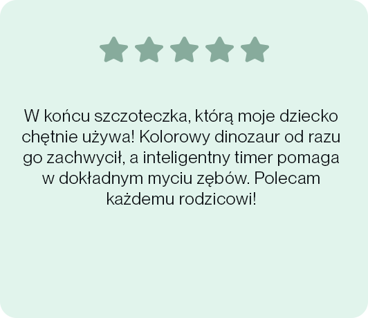 ortodontyczny. Jest delikatny dla dziąseł, a jego kolorowy, przyjazny design w kształcie dinozaura