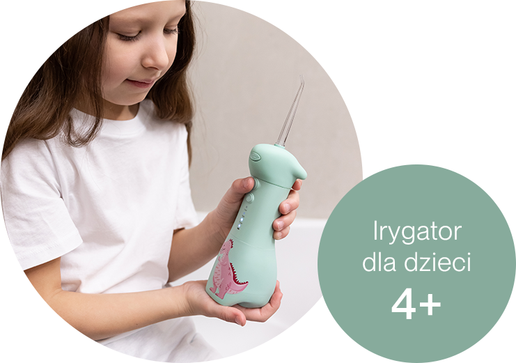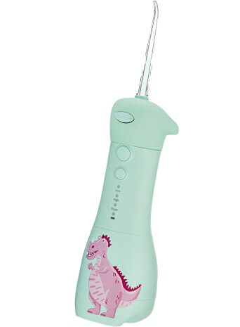 Bezpieczny irygator w kształcie dinozaura, który sprawi, że Twoje dziecko samo będzie prosiło o mycie ząbków - w domu i w podróży.